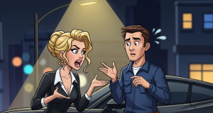 Carolyn, a rich blonde, buys a new automatic Jaguar XKR Sport.