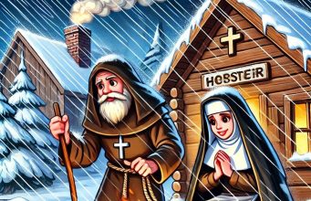 A priest and a nun find themselves stranded in a blizzard and take refuge in a remote, deserted cabin.