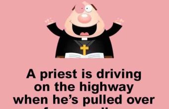 A priest is driving on the highway when he’s pulled over...