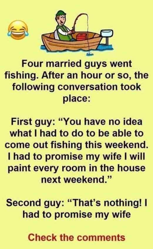 First, one of the men said, “You don’t know what I had to do to come fishing with you today. On Saturday, I promised my wife I would paint the entire house.”
