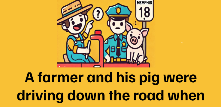 The cop asked the farmer, “Didn’t you know it is against the law to ride with a pig in front of your truck?”