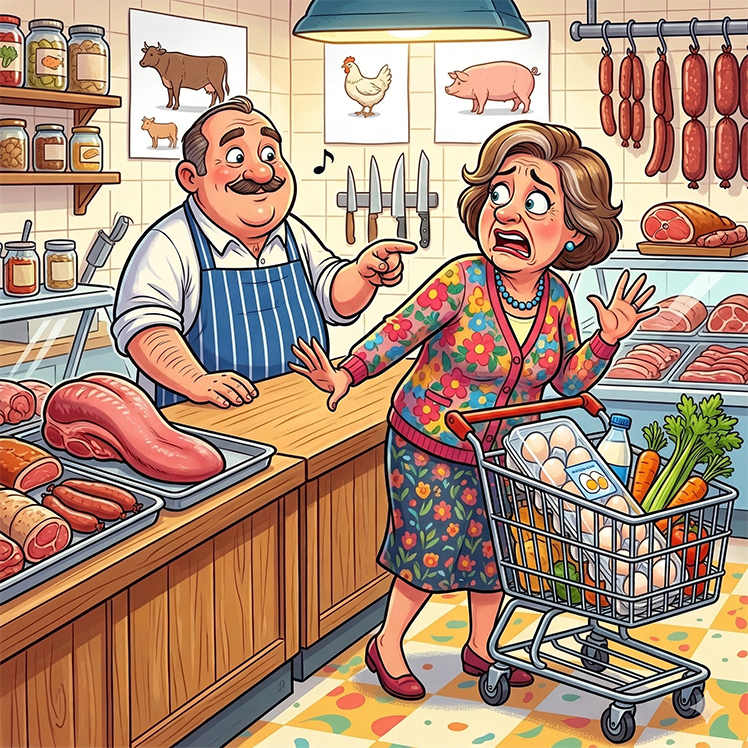 A lady goes into the butcher’s shop, and while walking around the store, she sees a beef tongue on the butcher’s counter.
