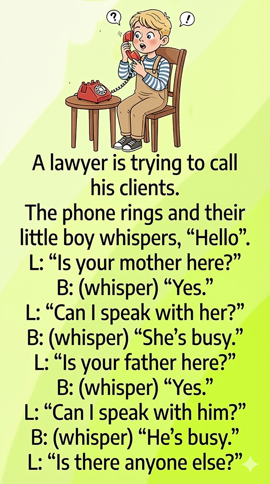 The phone rings, and their little boy whispers, “Hello.”