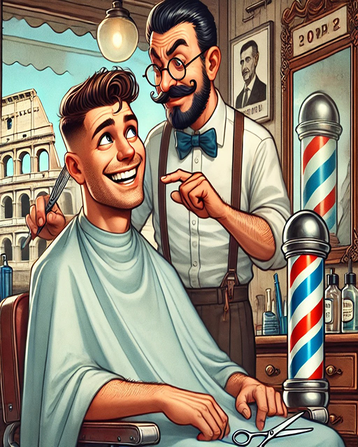 Home Life A man was getting a haircut before his trip to Rome.