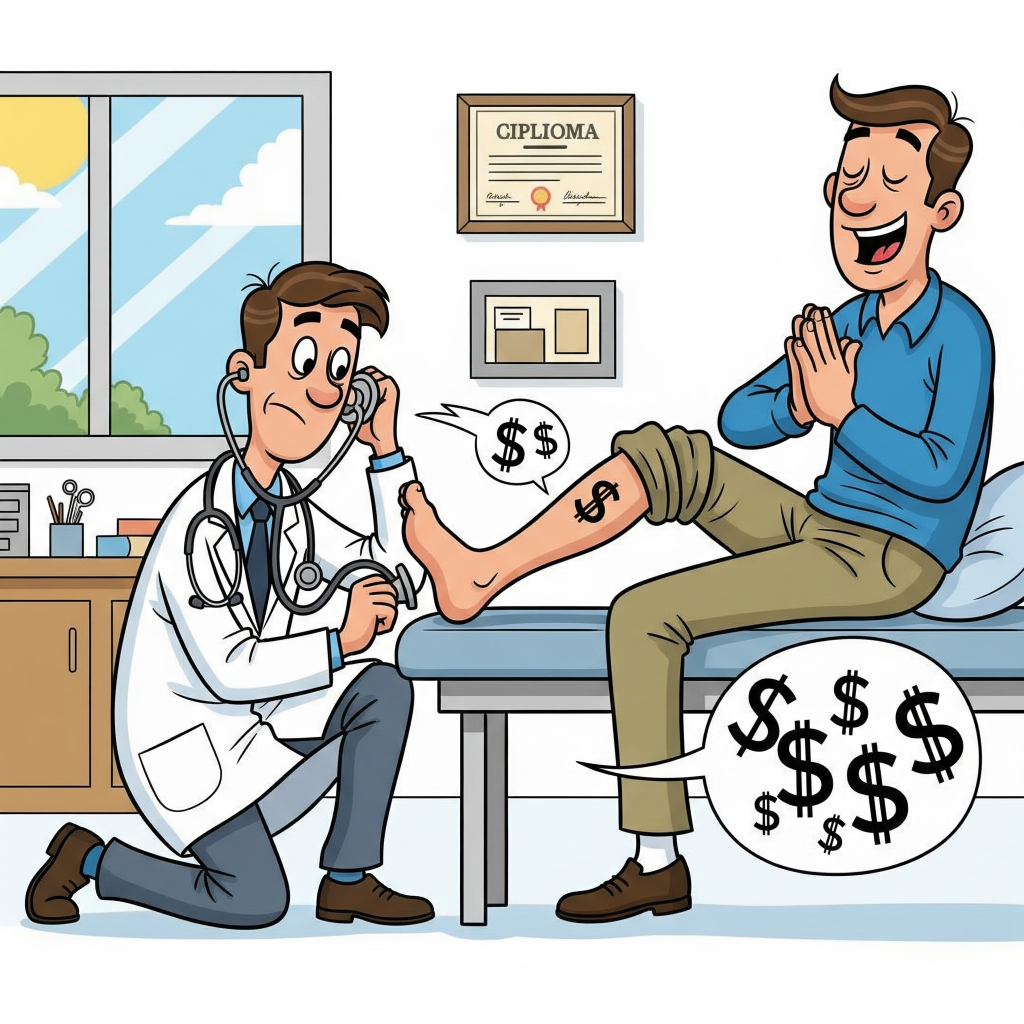 “Wait, Doc, that’s not it. There’s more, just put your ear up to my ankle,” the man urged him.