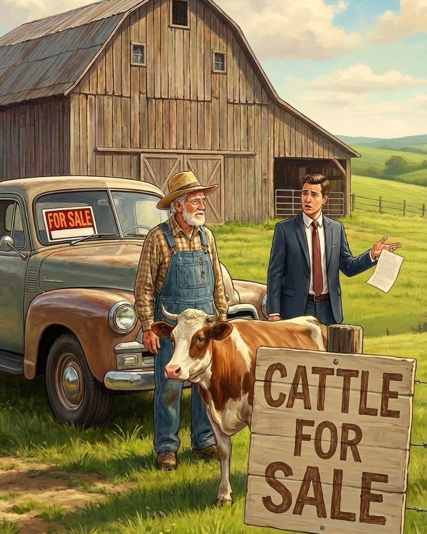 The farmer said, “Now wait, that’s not the final price of the cow. You are getting extras with it, and you have to pay them too.”
