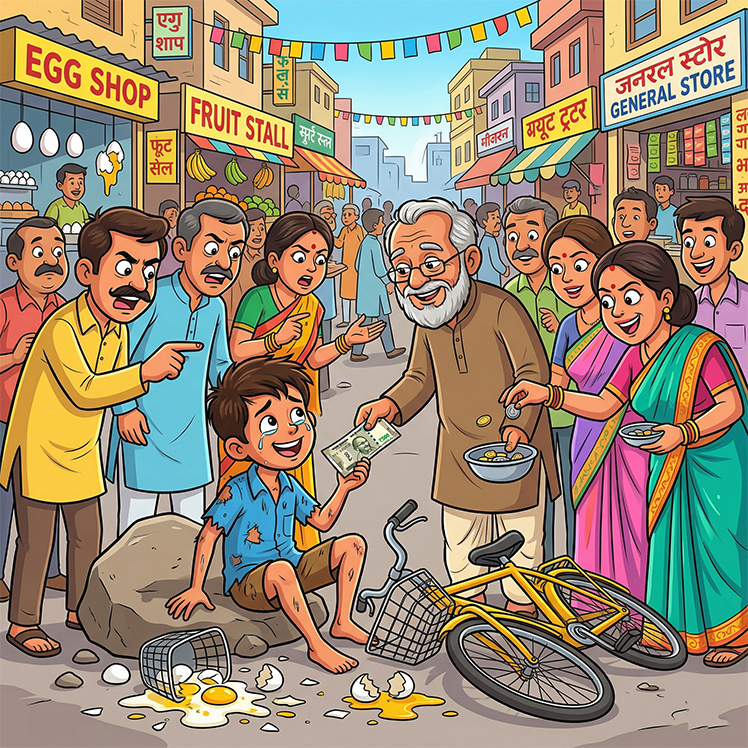 The old man handed the boy Rs500 and added, “These people are kind-hearted—they’ll give advice, but they’ll also help with money. Let them contribute.”