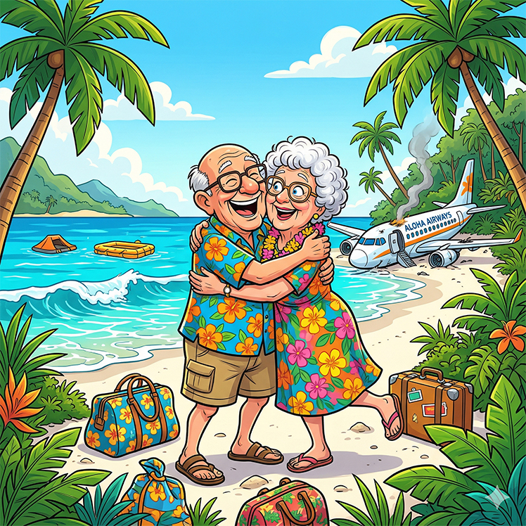 An elderly couple was flying to Hawaii for a two-week vacation to celebrate their 50th anniversary.