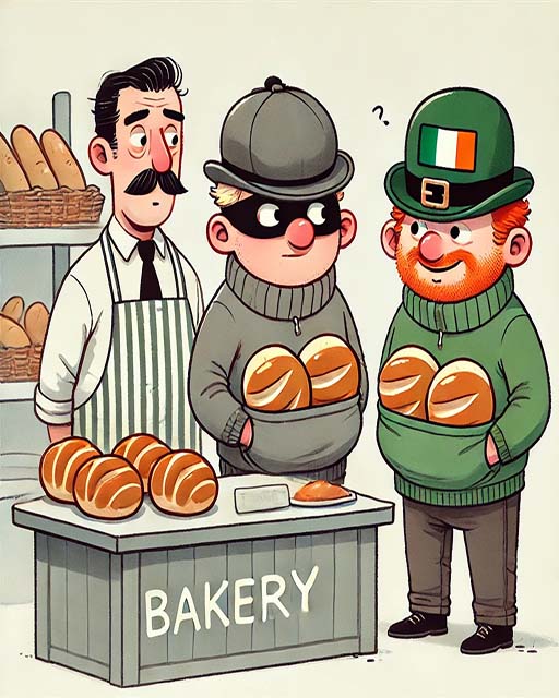 An Englishman and an Irishman go to a bakery.