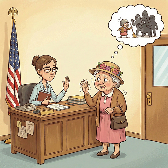 A little old lady tried to phone her local bank but was connected to the bank’s call center instead.