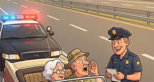 An older couple was cruising down the highway