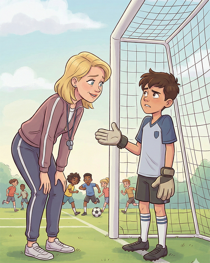 The boy looks at her incredulously and says, “Because I’m the goalkeeper!!!”