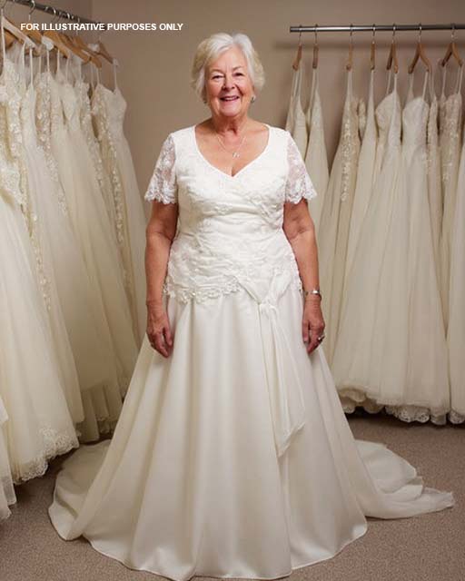 “That’s lovely,” she said, but the tone was sugary, not sincere. “We, um… don’t usually carry many gowns for women of… mature age, but we can see what we have.”