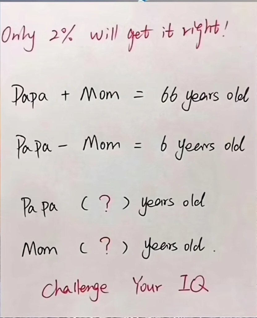 60 ÷ 2 = 30 → That’s Mom’s age