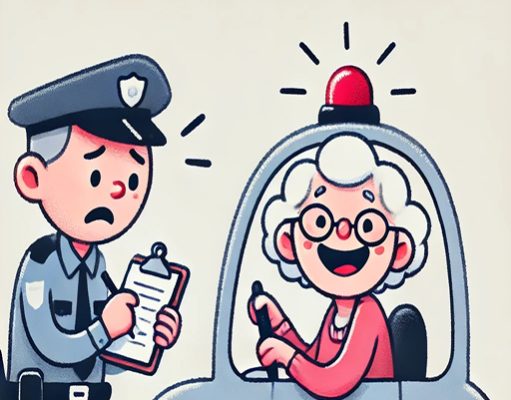 An elderly woman named Margaret was pulled over by a police officer for speeding.