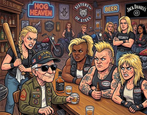 An old, blind Marine accidentally stumbles into an all-girl biker bar