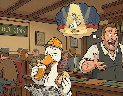 A duck waddled into a pub