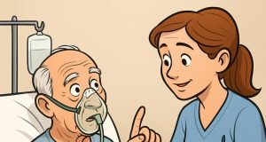 A man was lying in a hospital bed, hooked up to...