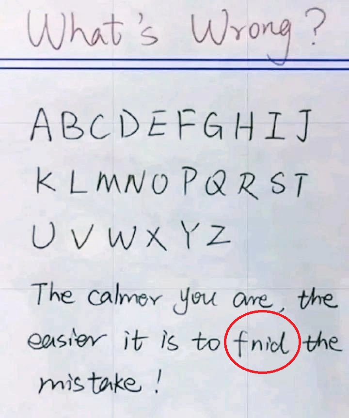The brain teaser also suggests that ‘the calmer you are, the easier it is to find the mistake.’ You will thus see alphabets from ‘A to Z’ written with the quote mentioned above written with an exclamation mark. Thus, run your mind and run it again, until your 5 seconds are up.