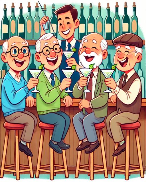 The four of them sipped their Martini and couldn’t help but notice seven other people at the end of the bar who didn’t have drinks in front of them and hadn’t ordered anything all the time they were there.