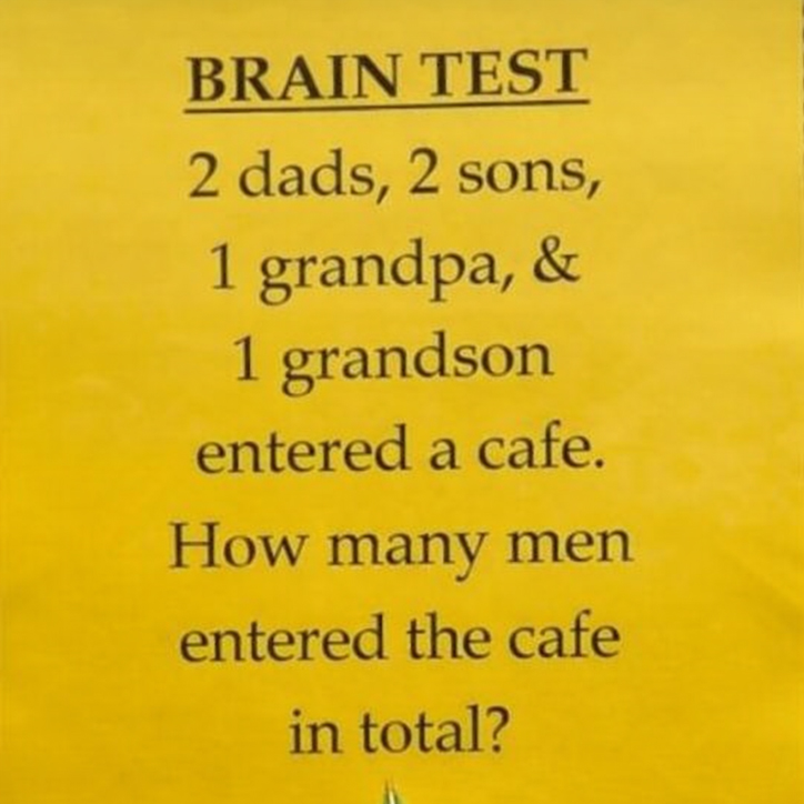 2 dads, 2 sons, 1 grandpa, & 1 grandson entered a cafe. How many men entered the cafe in total?