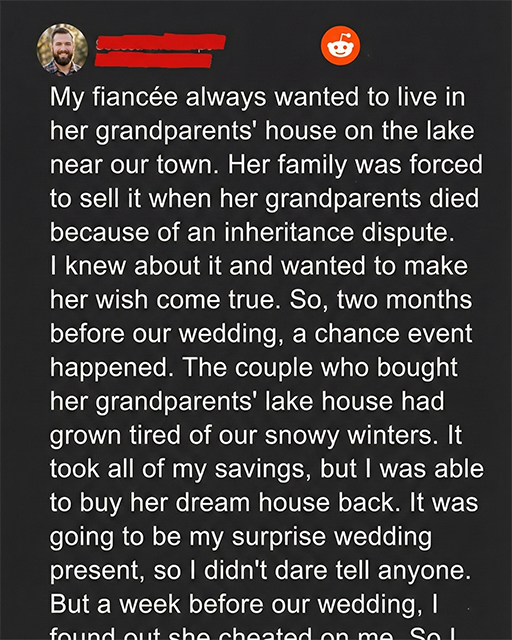 I spent my entire life savings on the one thing I believed would make my fiancée happiest. The place she had loved more than anywhere else in the world. Her childhood home by the lake. She left me three weeks before our wedding, without ever knowing what I had done for her.