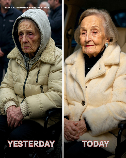 She stood straighter now, her hair neatly styled, her coat elegant and unmistakably expensive. She looked warm, composed, and entirely out of place.