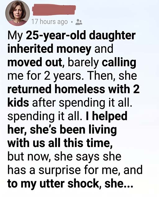 It was raining, one of those relentless downpours that blurred the world into gray. The knock on the door was urgent and uneven. When Barbara opened it, she barely recognized her daughter.