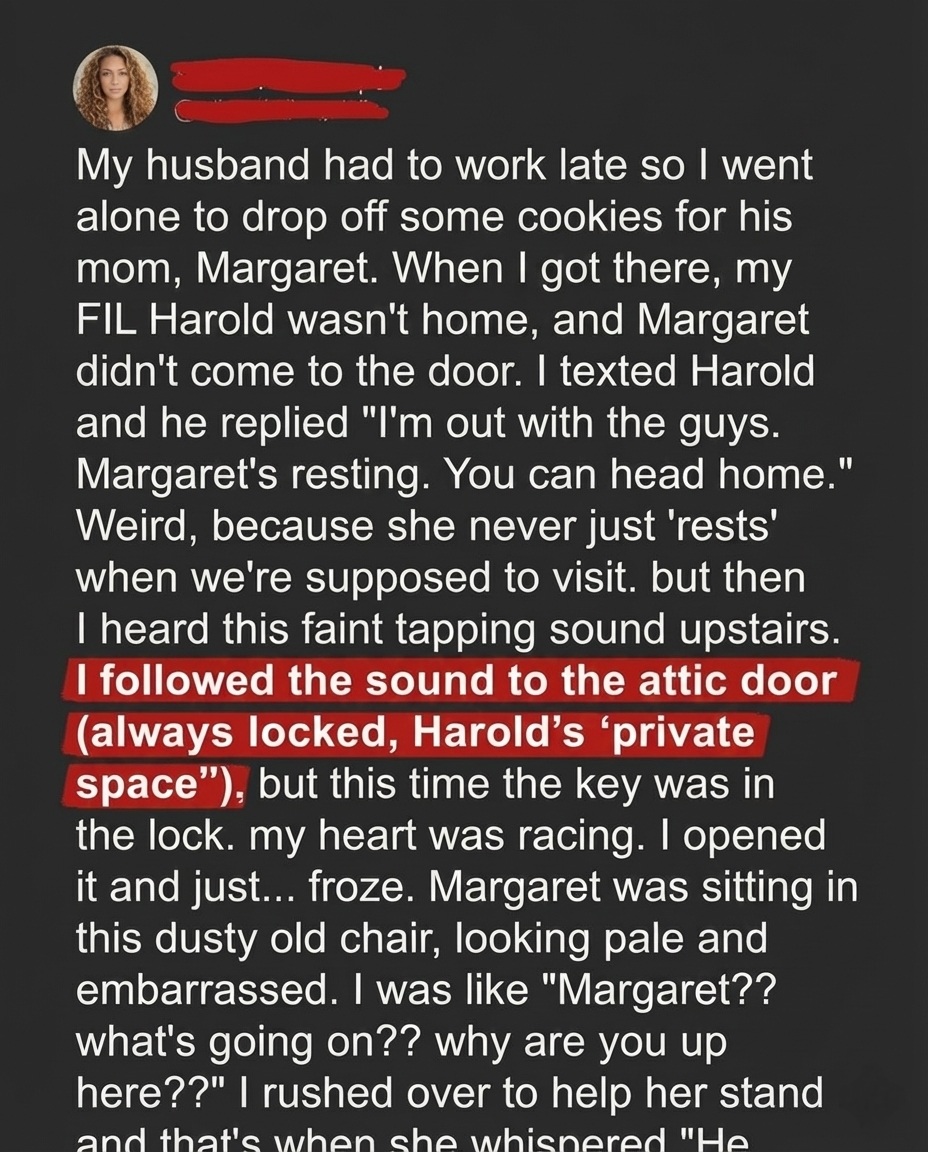 Harold had made that clear years ago. The attic was his domain—storage, tools, personal projects. Margaret herself had once laughed and told me she didn’t even bother asking what was up there anymore. So when I saw the key sitting in the lock, my breath caught in my throat.