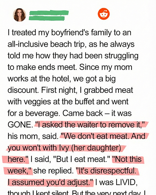 My Boyfriend’s Mom Banned Me from Eating Meat on a Trip I Paid For—So I Turned the Tables