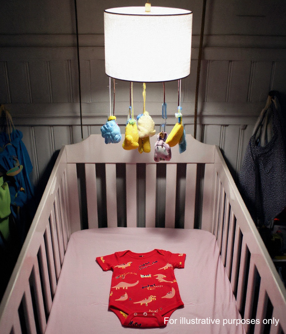 What stopped me was what hung above the crib.