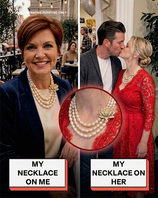 Around her neck, gleaming under the lights, was my grandmother’s pearl necklace.