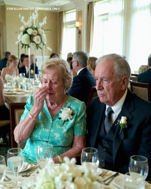 She wore a champagne-colored gown that gleamed beneath the chandeliers, practically daring anyone to confuse her with the bride. When she tapped her glass, the room quieted at once.