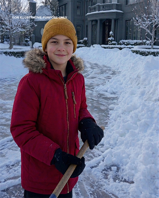 Every morning, before school, he bundled himself in layers that made him look twice his size. His hat was pulled low, his scarf wrapped tight, and his gloves tucked firmly into his sleeves. Then he grabbed the shovel and headed out into the freezing dark.
