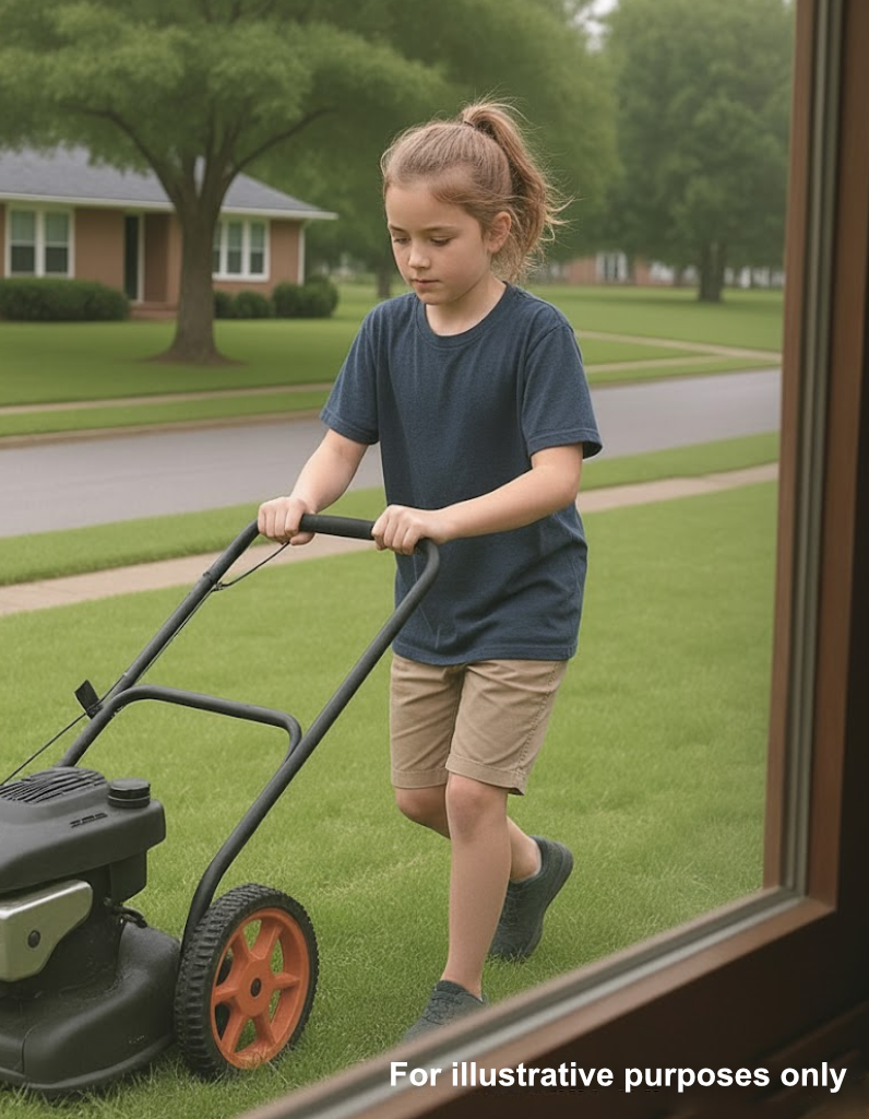 A skinny teenage girl was steadily mowing my front lawn, creating neat lines like she had done it a thousand times before. She was so focused she didn’t see me coming, earbuds jammed in and sweat dripping down her forehead.