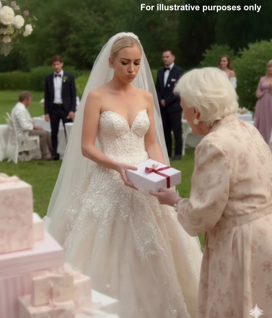Her bridesmaids giggled. One whispered loudly, “It looks like something from a yard sale.”