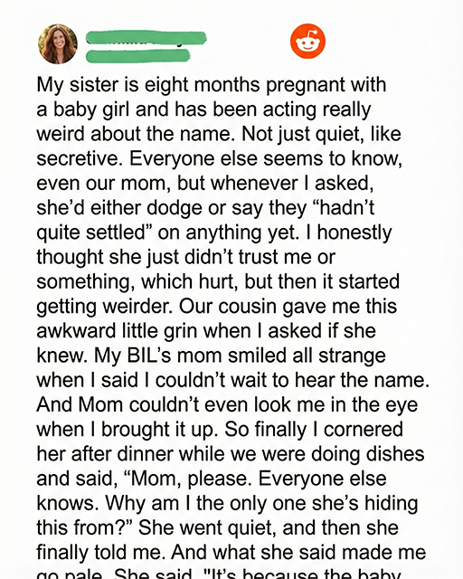 I was the only one she told at first. Not Mom. Not even Kai’s family. Just me.