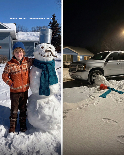 “I put the snowman where cars aren’t supposed to go,” he said quietly.