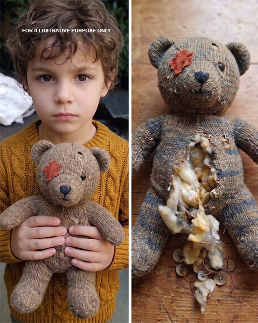 At first glance, it looked like something no one would want to touch, let alone bring home. Its fur was stiff with dirt, one of its button eyes was missing, and a jagged tear ran along its back, exposing clumps of yellowed stuffing.