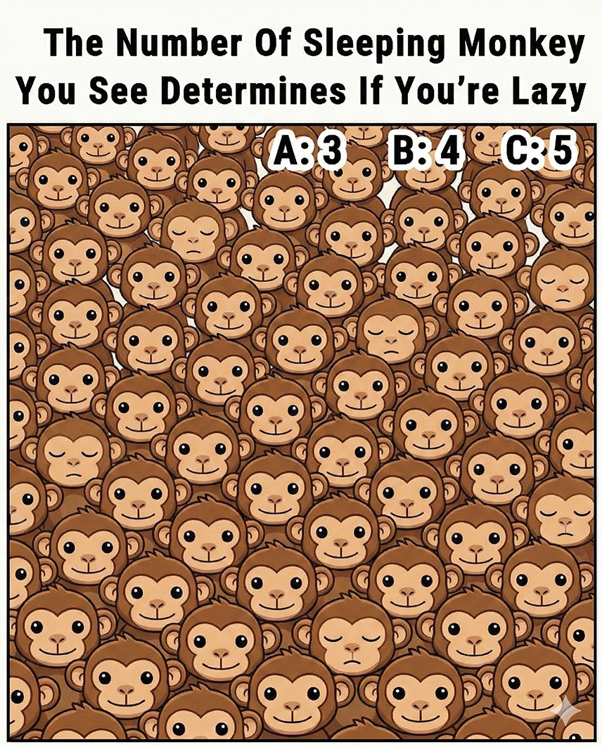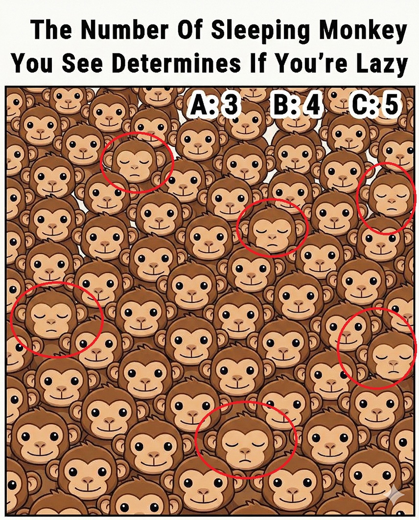 Take a moment and think about your answer. Did you rush through the image, or did you carefully scan each row? The number of sleeping monkeys you spotted — from one to five — can reveal something playful yet interesting about your observation style and level of focus.