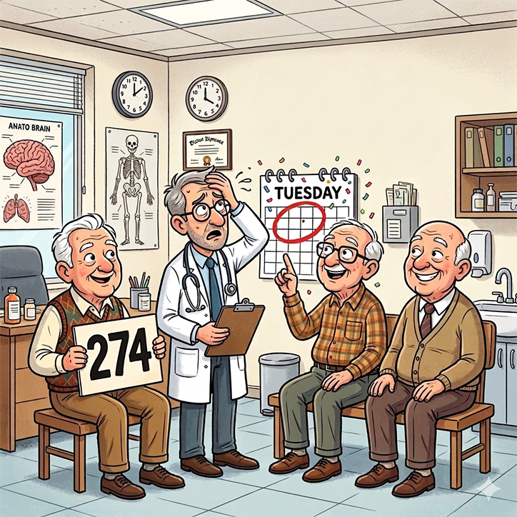 “Easy,” the third man replies. “I just subtracted 274 from Tuesday.”