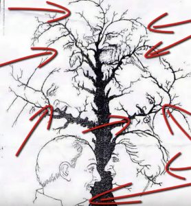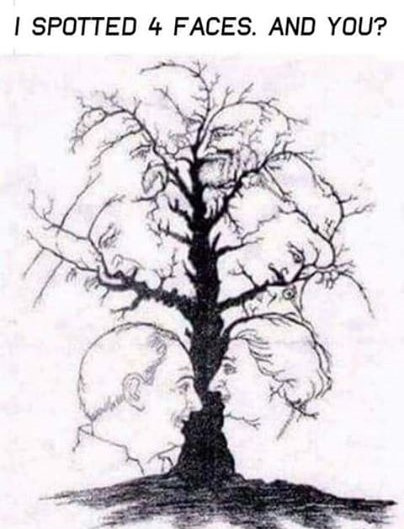 In the picture below, you can see two faces and a tree. But the challenge itself is to find more than that.