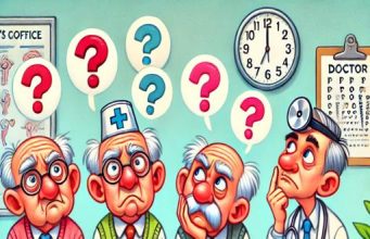 Three elderly men are at the doctor’s office for a memory test.