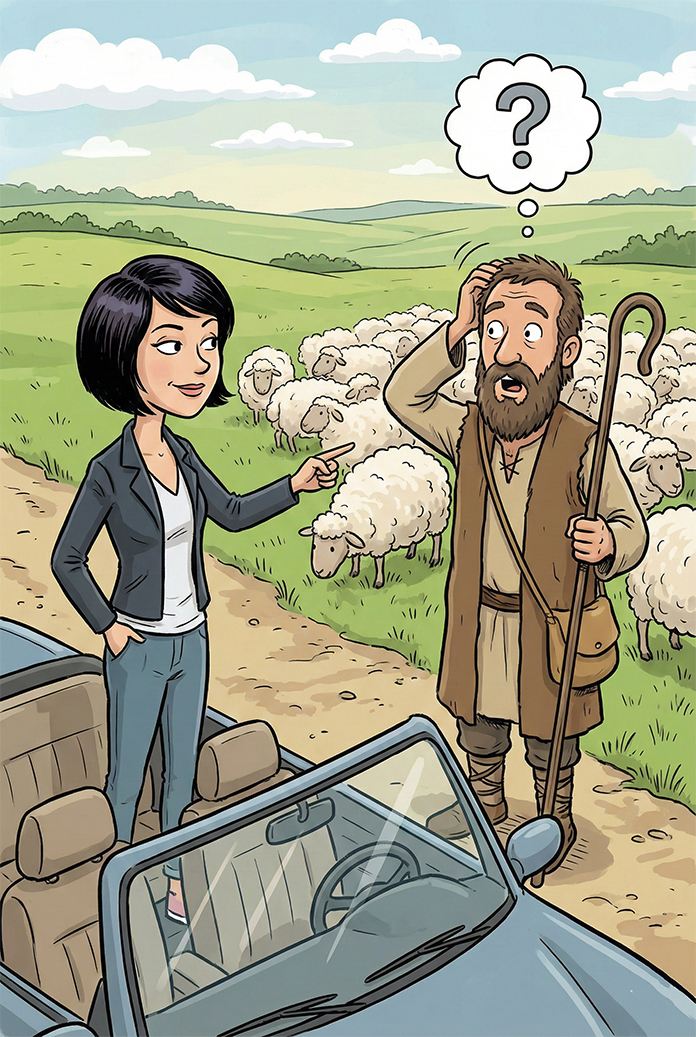 “Sir, if I can guess exactly how many sheep you have, can I take one home?” she asked.